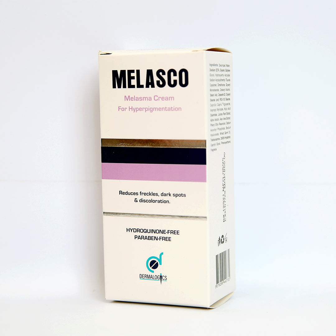 Melasco anti-melasma cream contains advanced ingredients that lighten your skin and reduce the appearance of hyperpigmentation such as age spots, acne marks, melasma, and uneven skin tone. It also reduces the appearance of discoloration and dark spots caused by factors such as age, acne, sun exposure, and pregnancy.